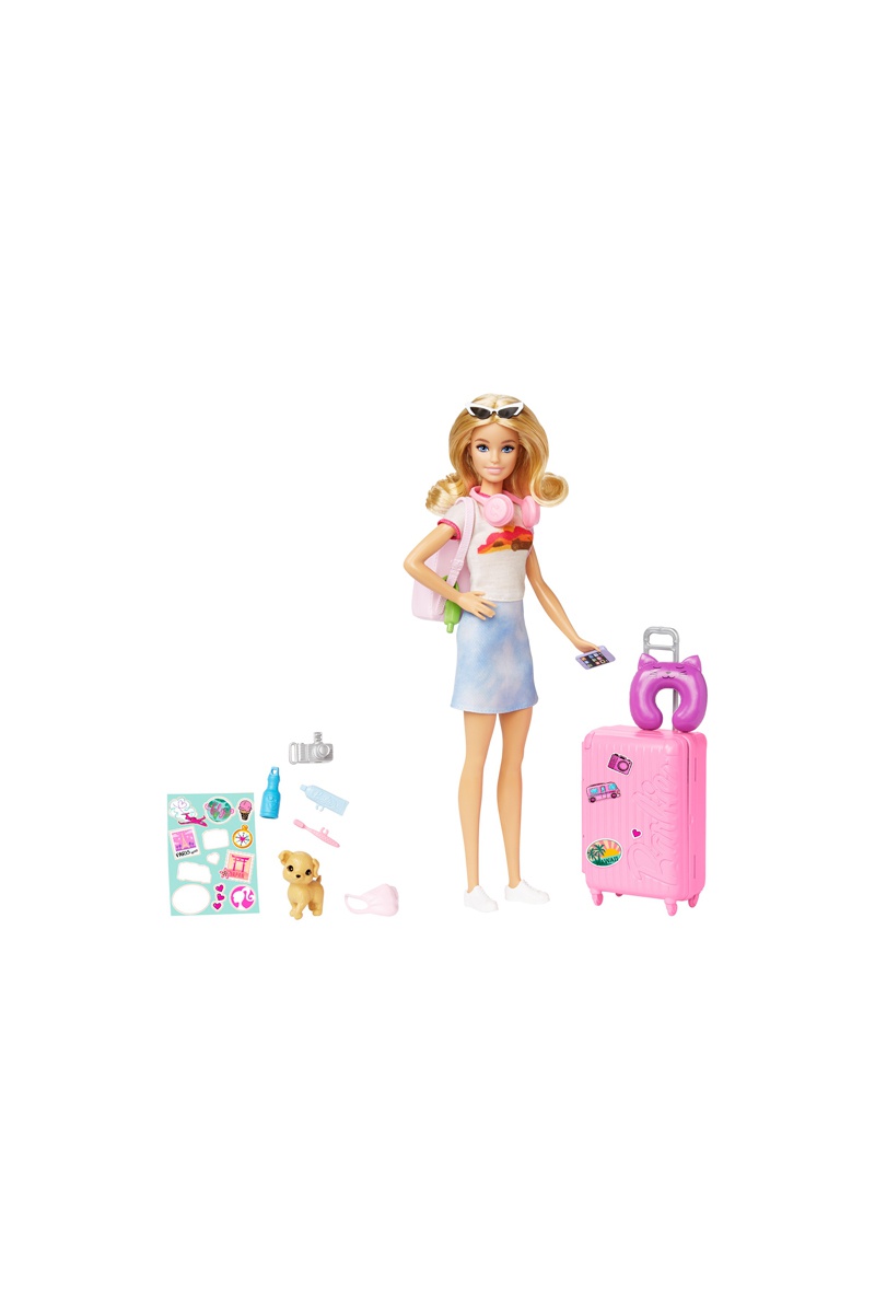 La poupée Barbie® « Malibu » Roberts est prête à décoller vers sa prochaine destination avec son chiot et plus de 10 accessoires de voyage. Les enfants peuvent utiliser la planche d’autocollants fournie pour décorer sa valise, qui s’ouvre et se referme pour encore plus de réalisme.
