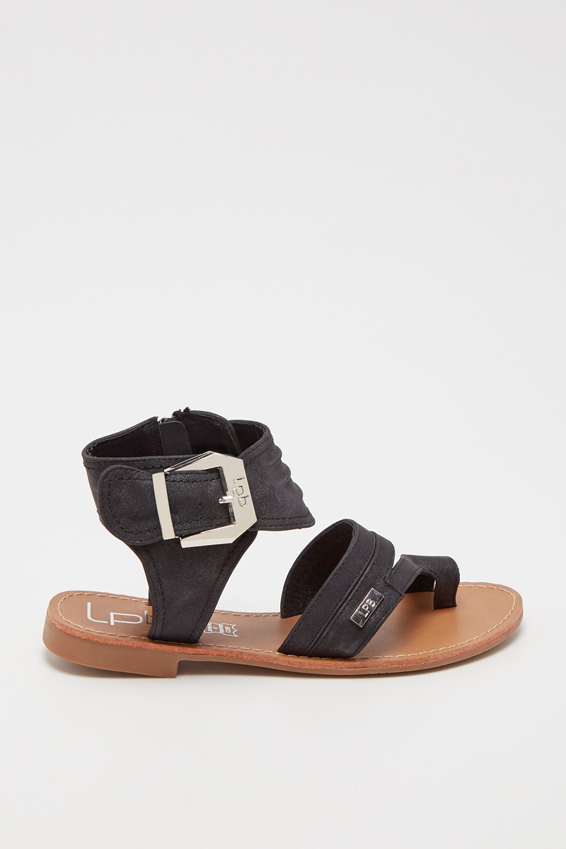 Fermeture par bride à boucle sur le côté extérieur et zippée sur le côté intérieur.