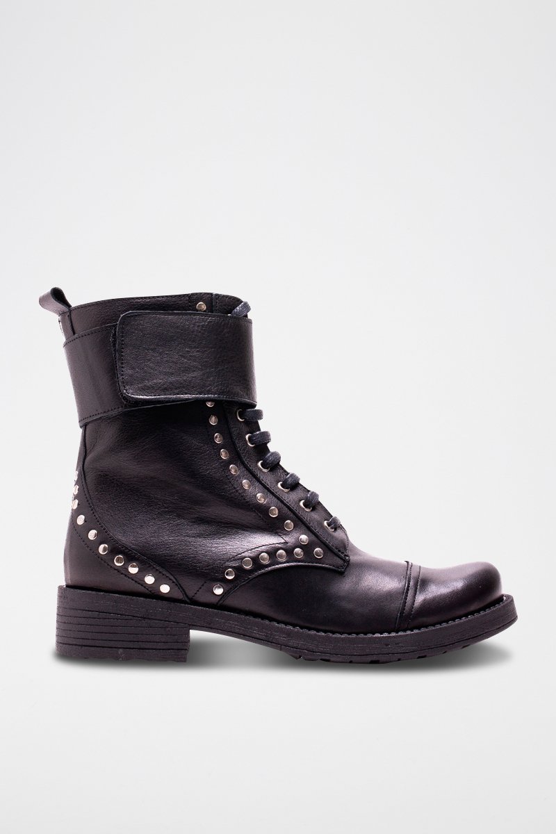 Fermeture zippée sur le côté intérieur, à scratch sur le côté extérieur et à lacets.
