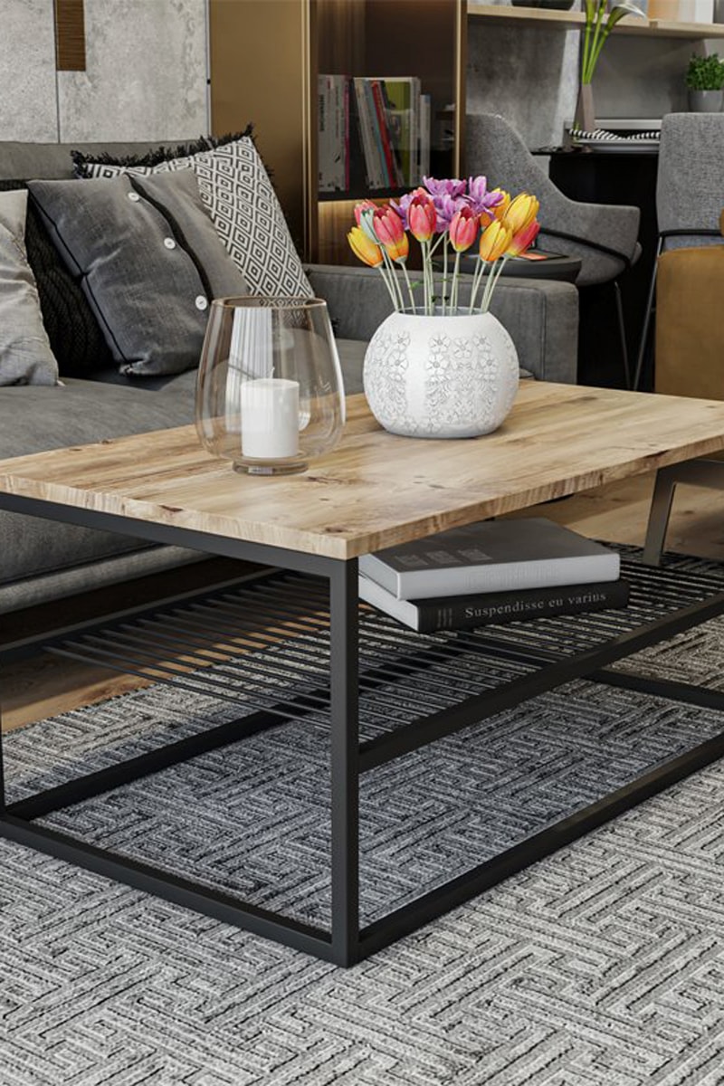 Table basse Asude - Noir et imitation bois