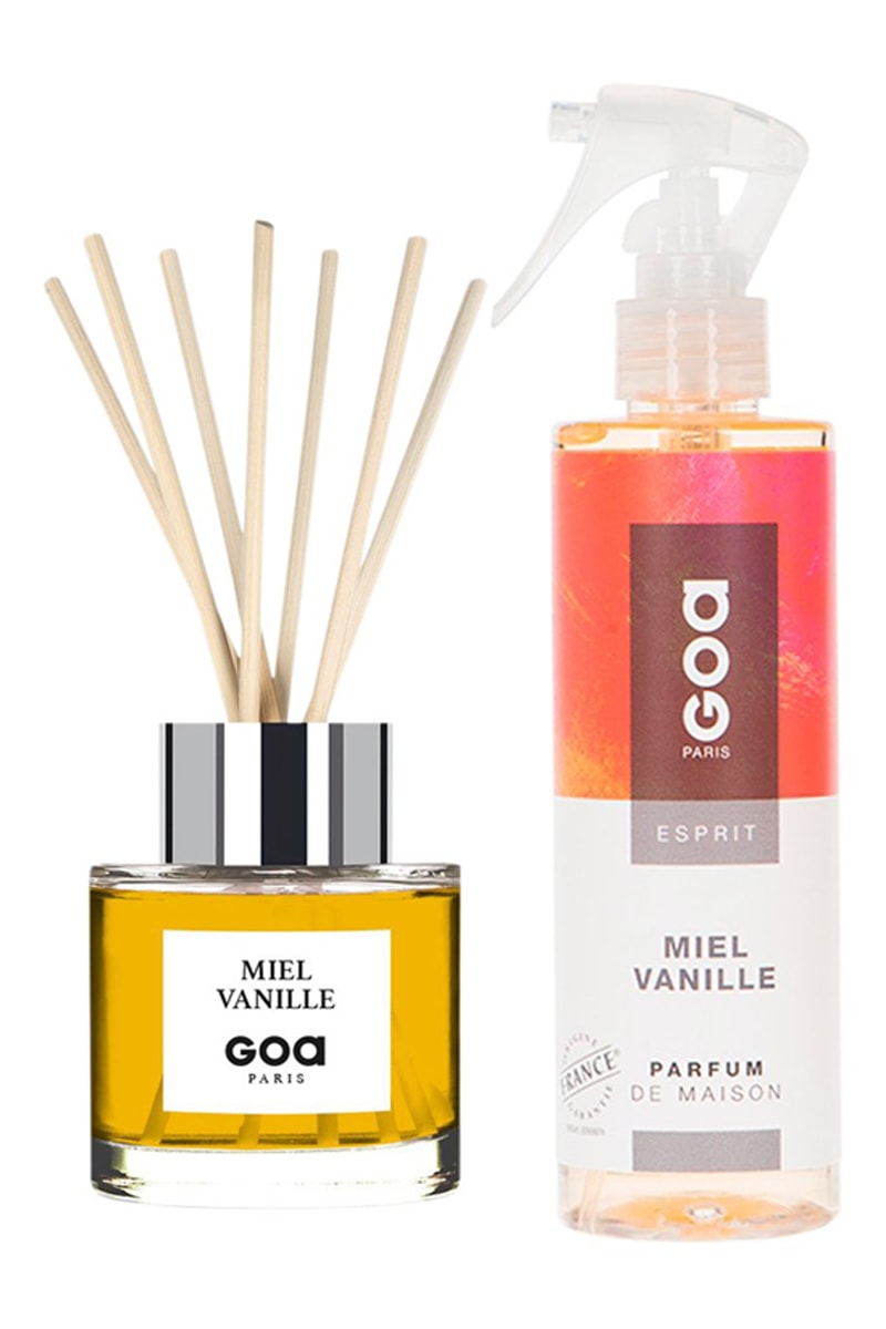 Bouquet parfumé Goatier - Miel et vanille - 200 ml et Vaporisateur d'ambiance - Miel vanille - 250 ml - coloris tiges aléatoire