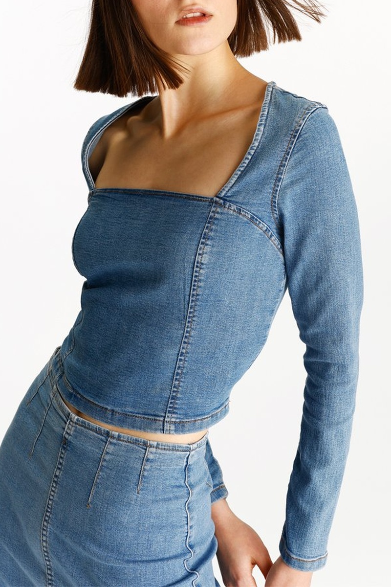 Top en jean à manches longues.