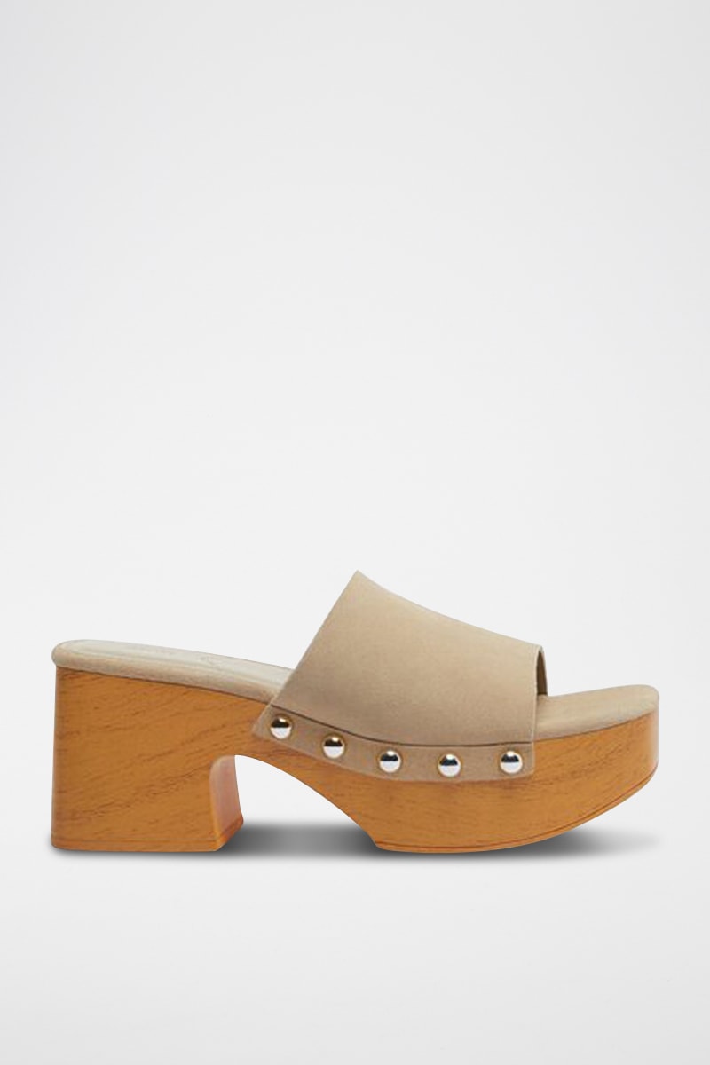 Mules à talons en nubuck - Beige
