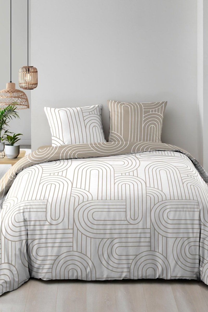 Parure de couette réversible Modul - Blanc et marron