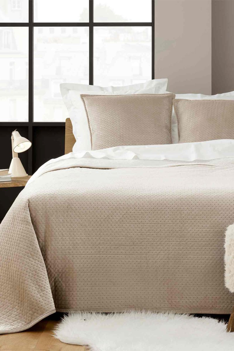 Couvre-lit et taies d'oreiller en velours Mylene - Marron