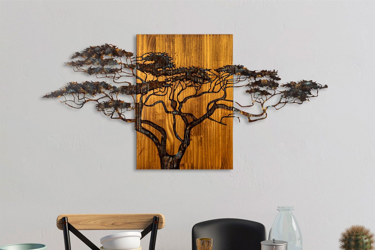 Décoration murale en bois Acacia Tree - 144 x 70 x 3 cm - Naturel et noir