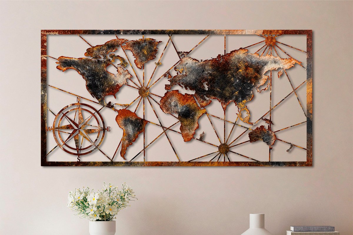 Décoration murale World Map Large - 120 x 60 cm - Marron