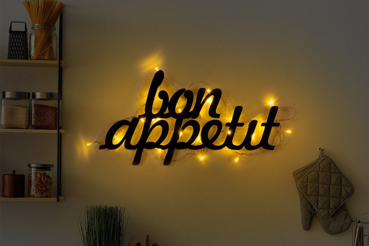 Décoration murale LED 'Bon Appetit' - Noir - 15 W - 30 x 50 cm