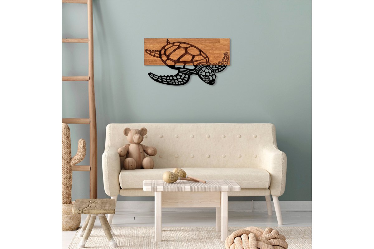 Décoration murale Caretta Caretta en bois - Naturel et noir - 58 x 3 x 32 cm