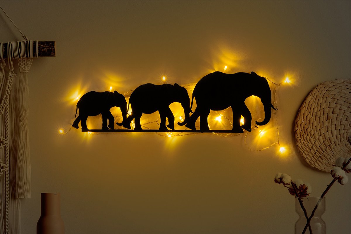 Décoration murale LED Elephant - Noir - 15 W - 15 x 50 cm