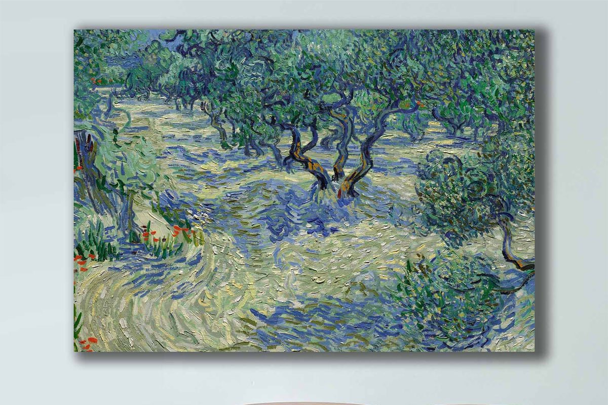 Reproduction de l’œuvre "Champ d'oliviers" de Van Gogh.