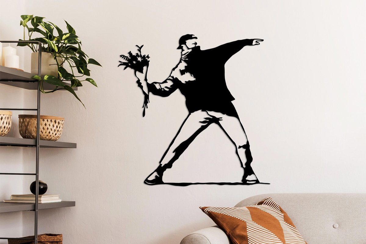 Décoration murale "Le lanceur de fleurs" - Banksy - 69 x 70 x 0,15 cm - Reproduction