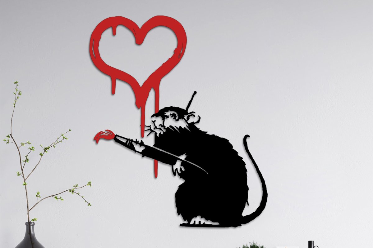 Reproduction de l'œuvre "Love Rat" de Banksy.
