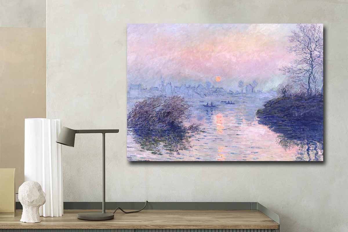 Reproduction de l'œuvre "Coucher de soleil sur la Seine à Lavacourt" de Claude Monet.