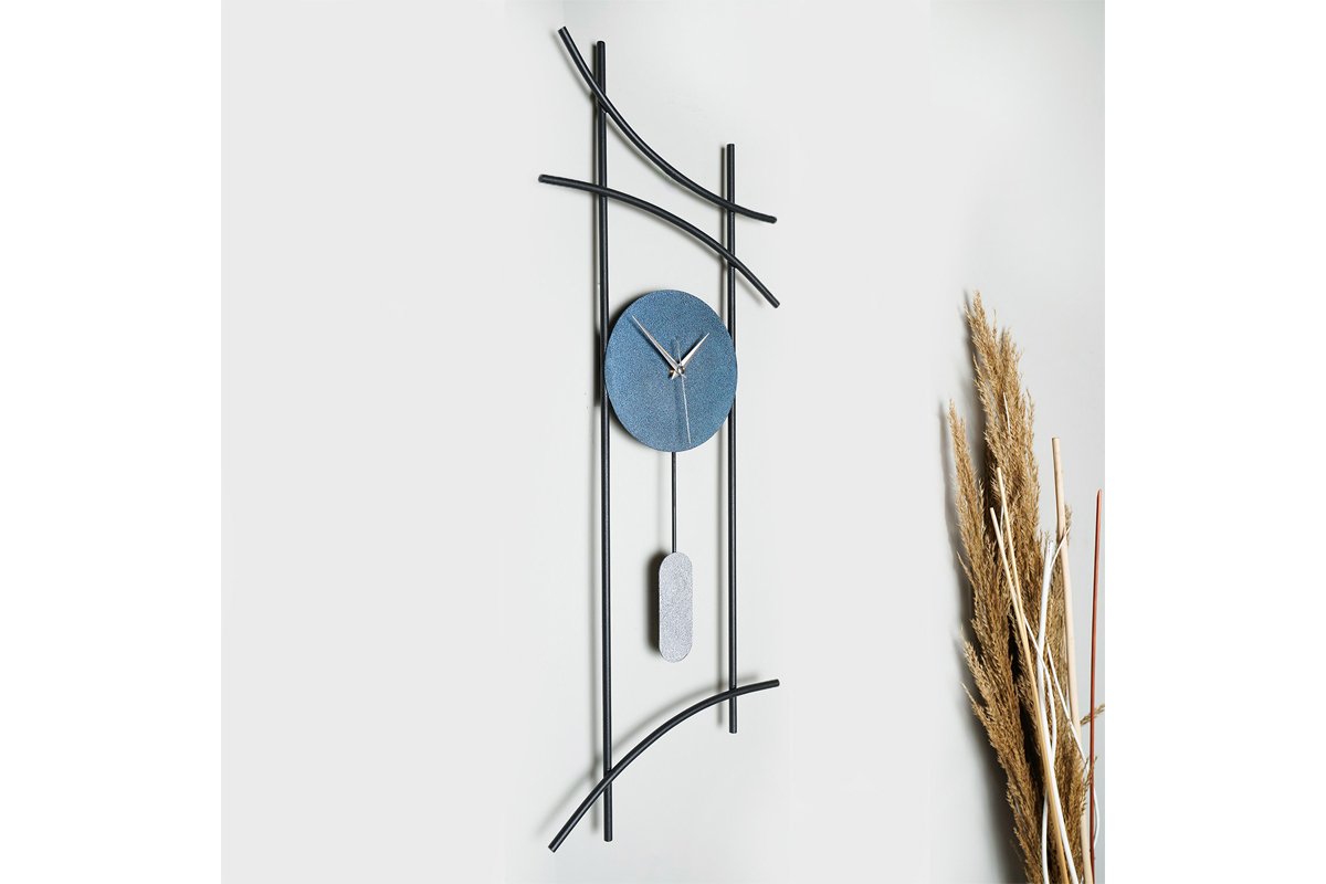 Horloge murale - 75 x 30 cm - Bleu et gris