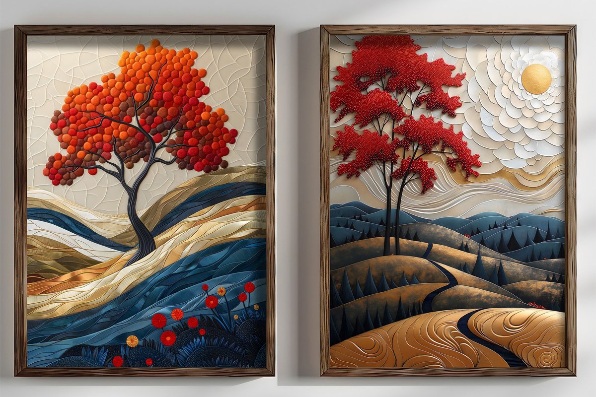 2 peintures décoratives encadrées en MDF Sandrine - 50 x 70 cm