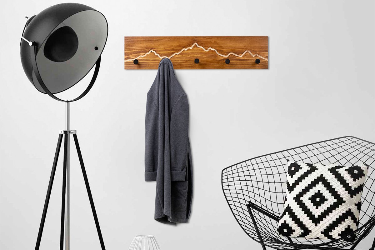 Porte-manteau en bois - Naturel et noir - 60 x 14 x 5 cm