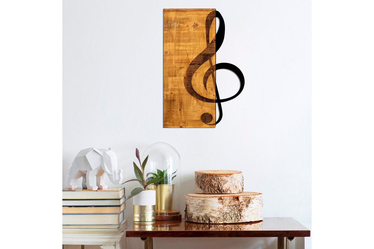 Décoration murale en bois Treble Clef - 39 x 58 cm - Imitation bois et noir