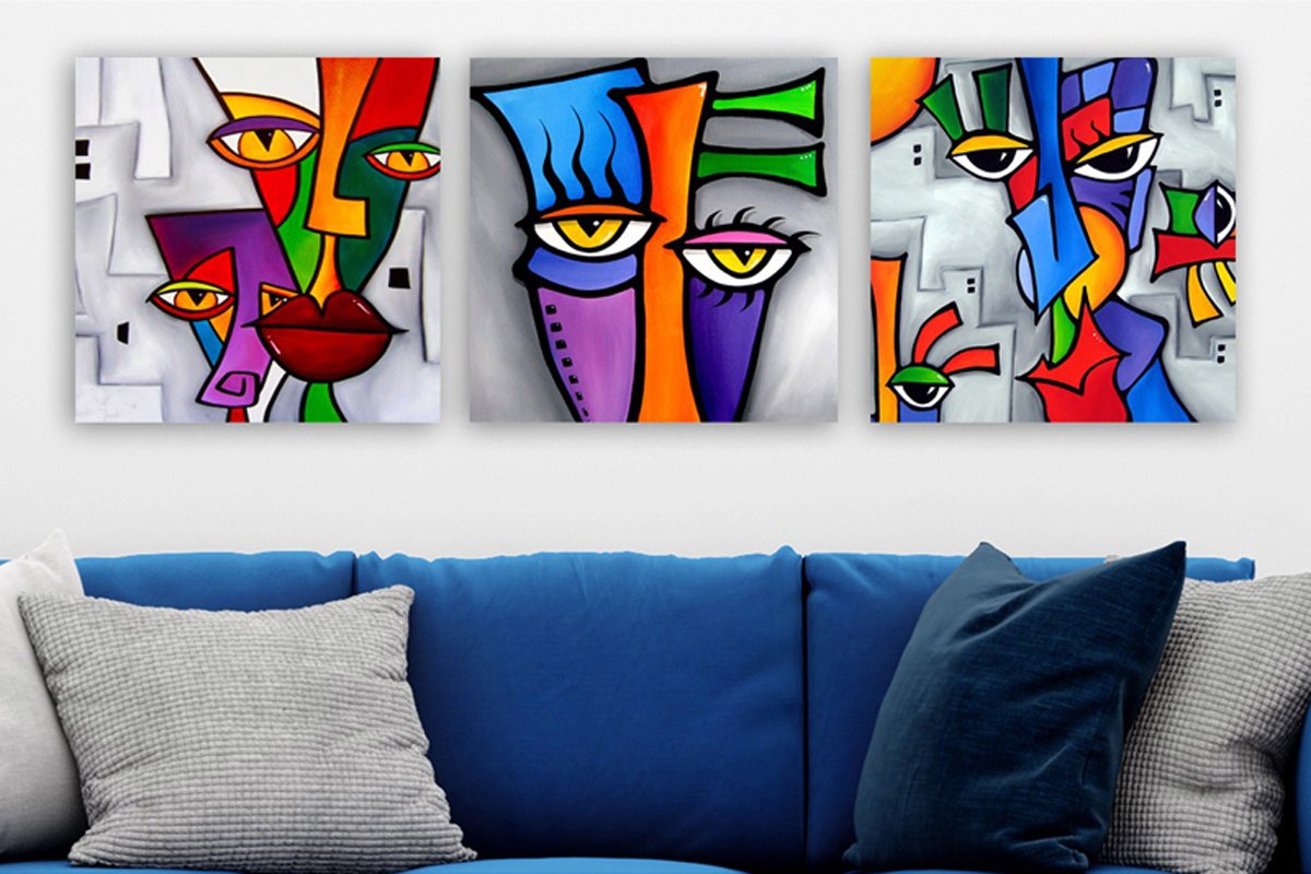 3 tableaux Faces - Thomas C. Fedro - 30 x 30 cm