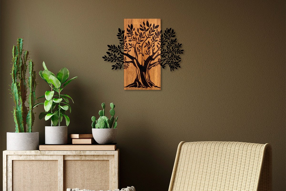 Décoration murale en bois - 65 x 58 cm - Naturel et noir