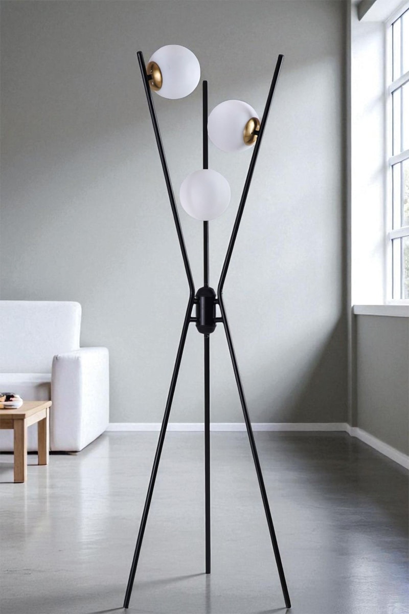 Lampadaire trépied - Noir - 3 x 40 W