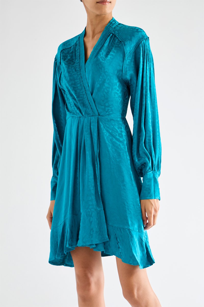 Robe portefeuille à manches longues bouffantes boutonnées.