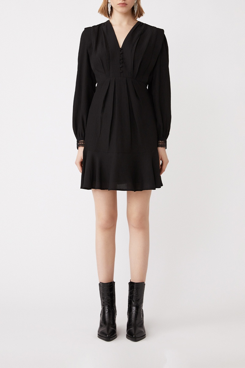 Robe droite à manches longues boutonnées avec empiècement en dentelle.