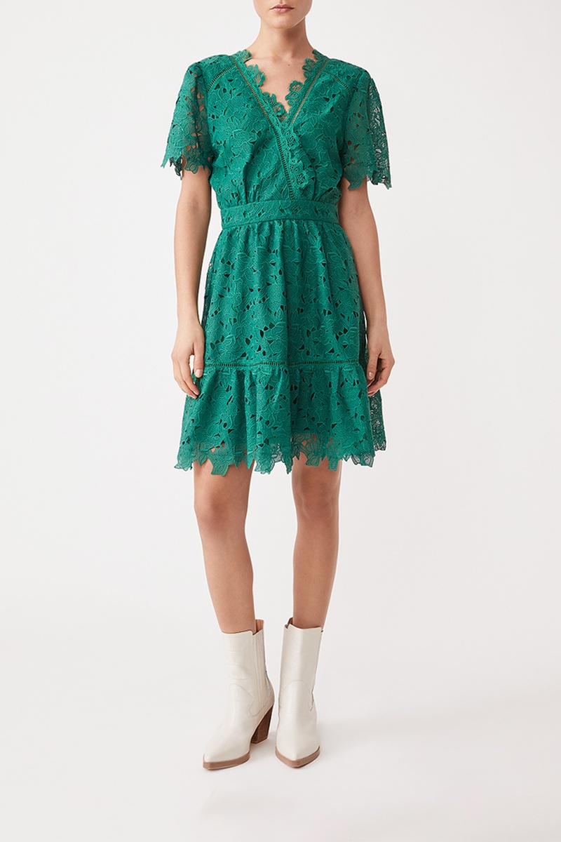 Découpe avec liens à nouer et fermeture zippée au dos.
