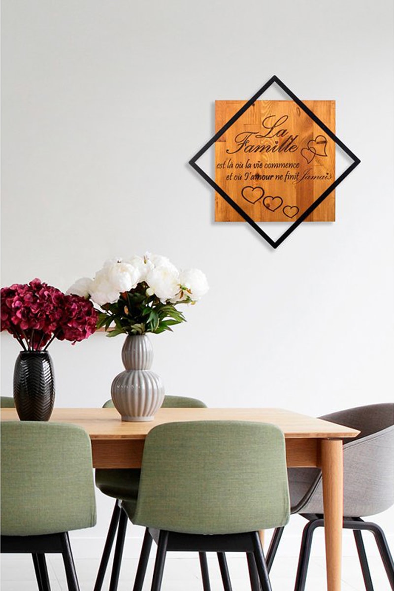 Décoration murale en bois La Famille - 54 x 54 cm - Naturel et noir