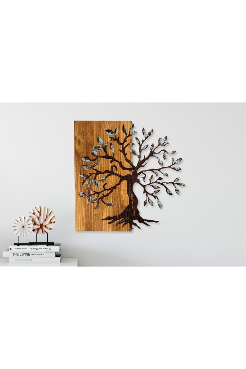 Décoration murale en bois et métal.