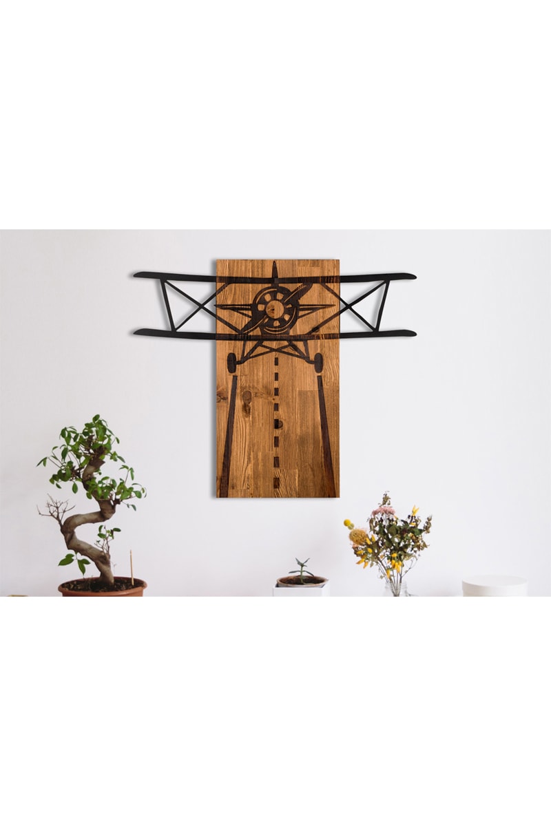 Décoration murale Avion - Naturel et noir - 68 x 58 cm