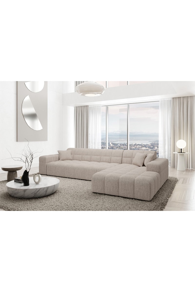 Canapé d'angle droit Cardano - Beige - 5 places - Tissu structuré