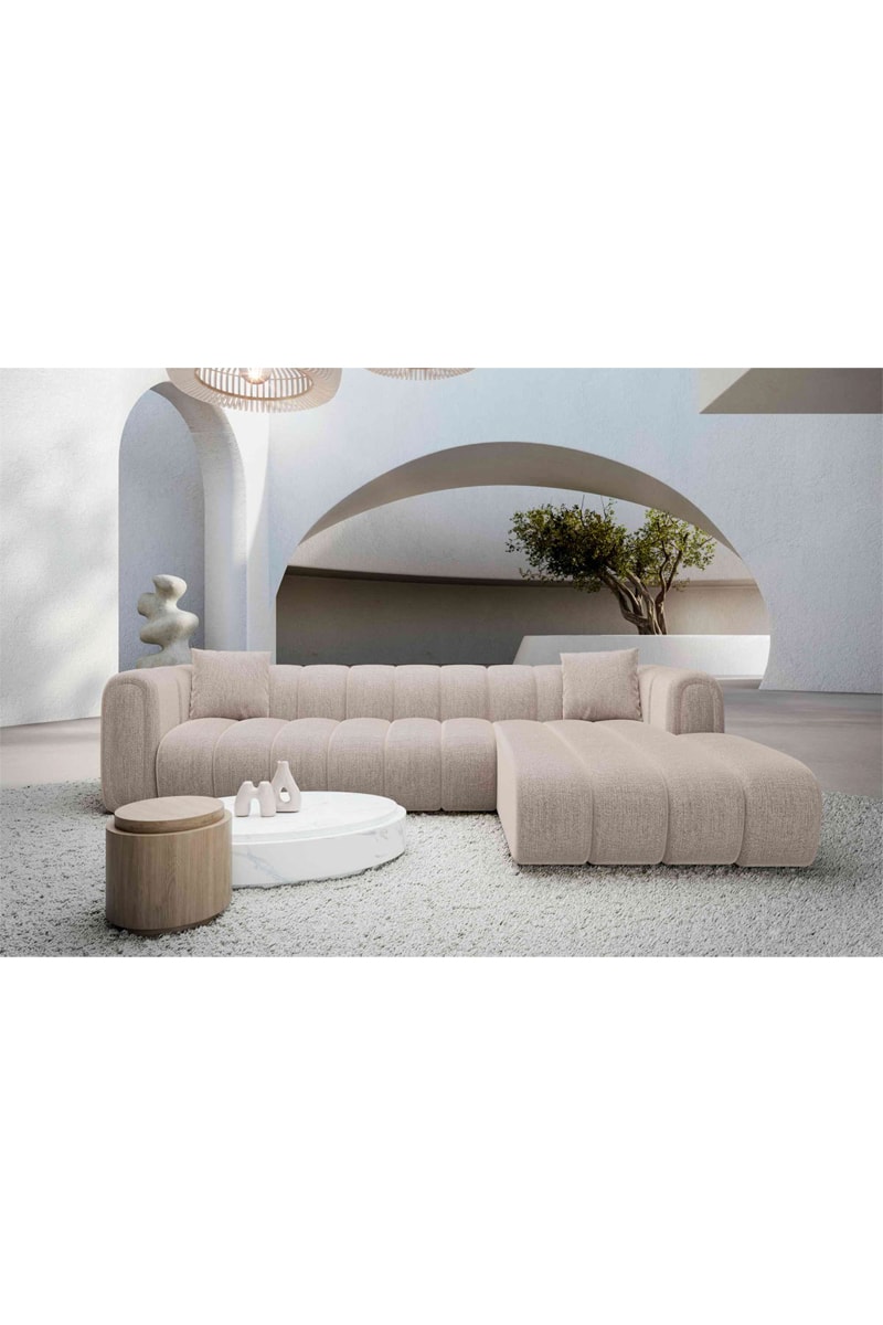 Canapé d'angle droit Luma - Beige - 5 places - En tissu structuré