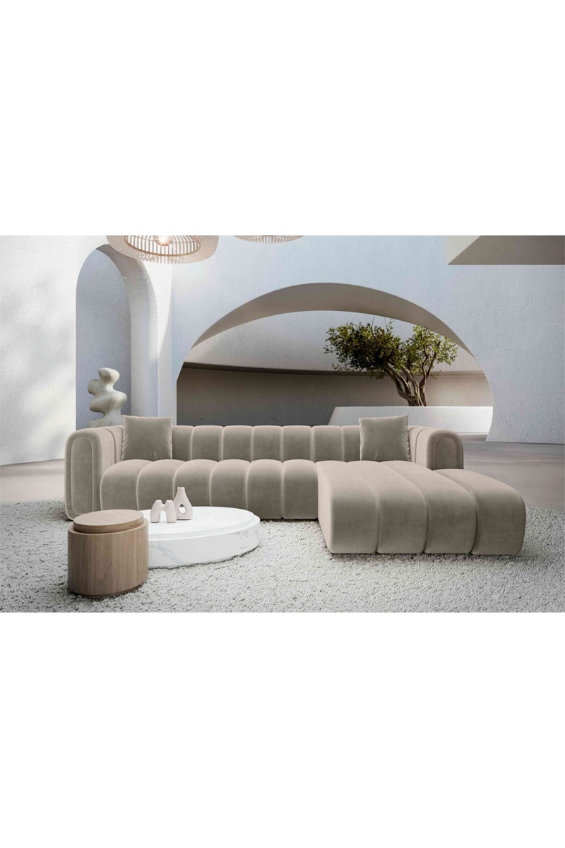 Canapé d'angle droit Luma - Beige foncé - 5 places - Tissu toucher velours