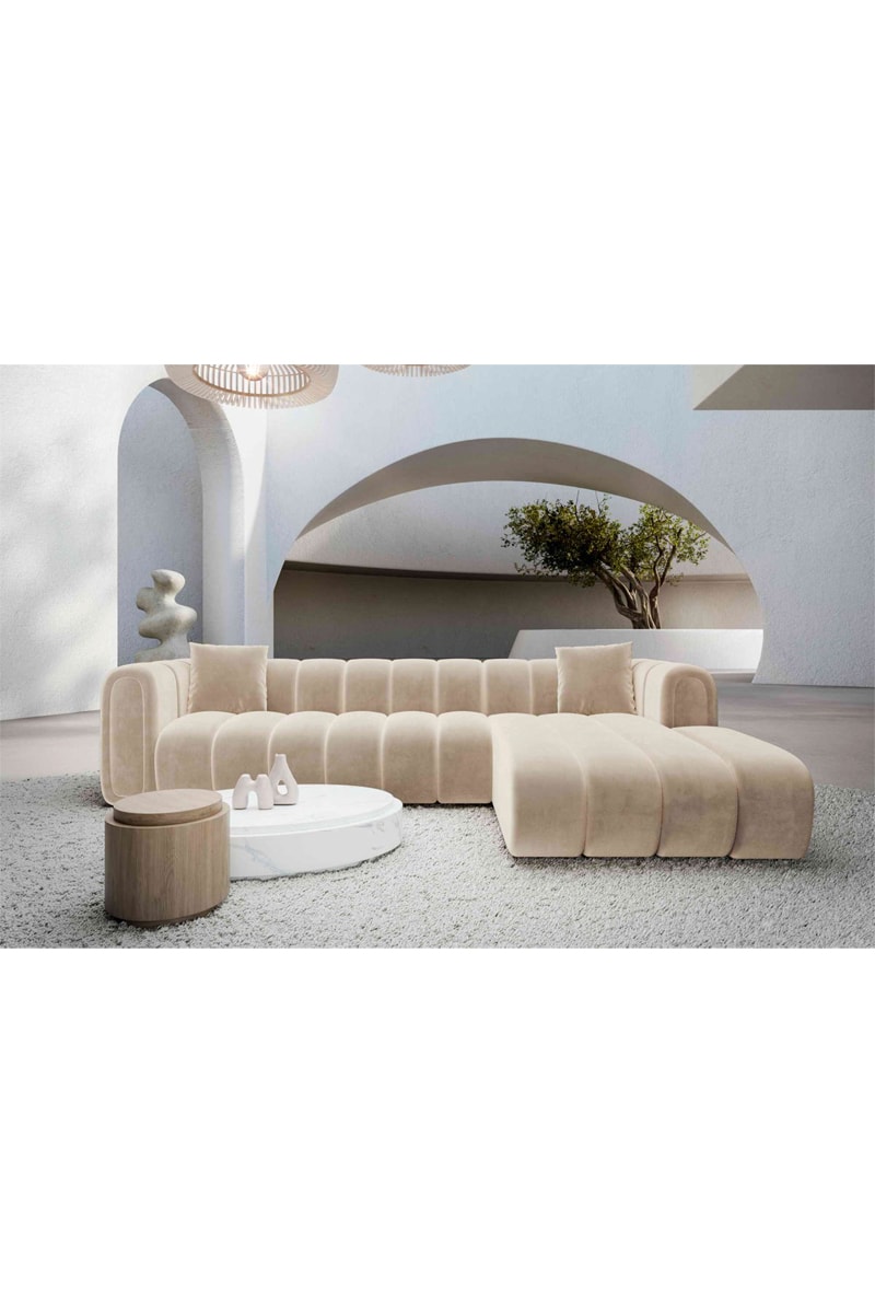 Canapé d'angle droit Luma - Crème - 5 places - Tissu toucher velours