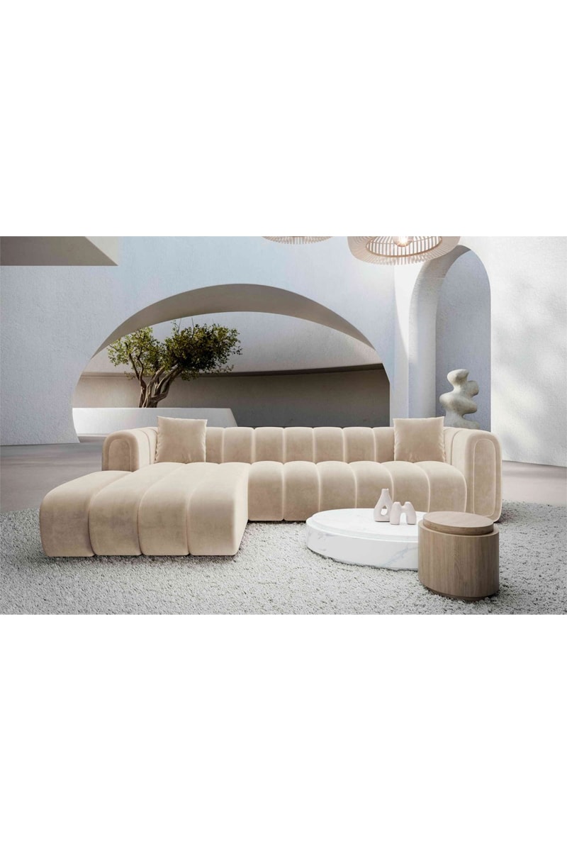 Canapé d'angle gauche Luma - Crème - 5 places - Tissu toucher velours
