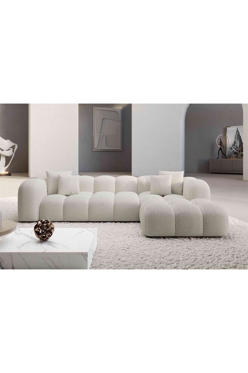 Canapé d'angle droit Form Nuvola - Blanc - 5 places - Tissu bouclette