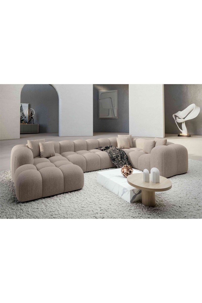 Canapé d'angle droit panoramique Nuvola - Beige - 7 places - En tissu structurel