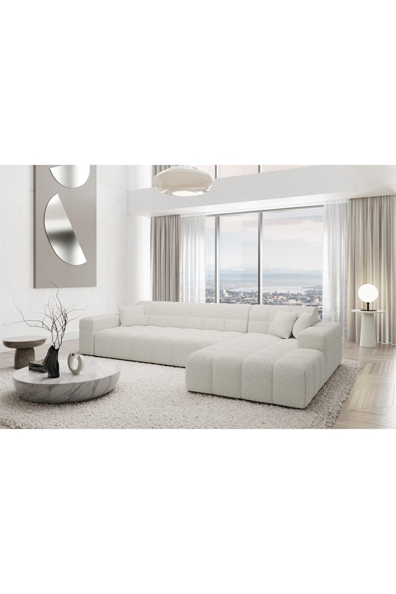 Canapé d'angle droit Cardano - Blanc - 5 places - Tissu bouclette