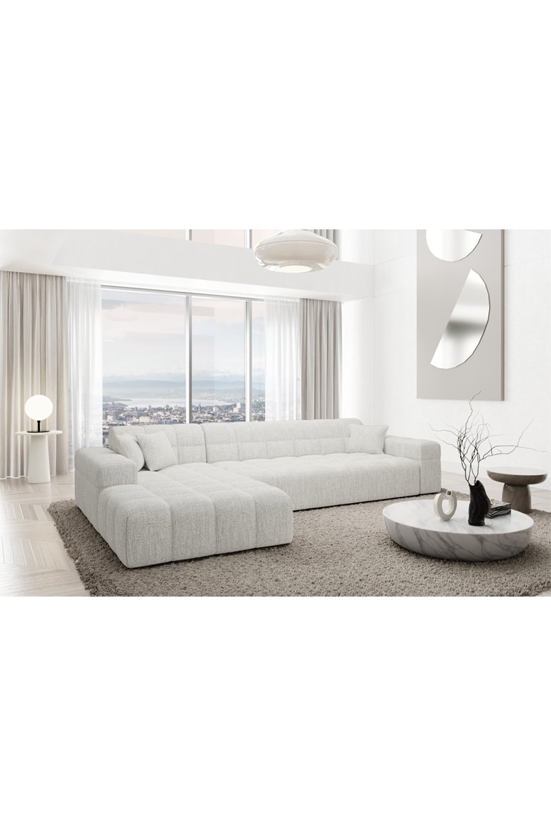 Canapé d'angle gauche Cardano - Blanc - 5 places - Tissu structuré