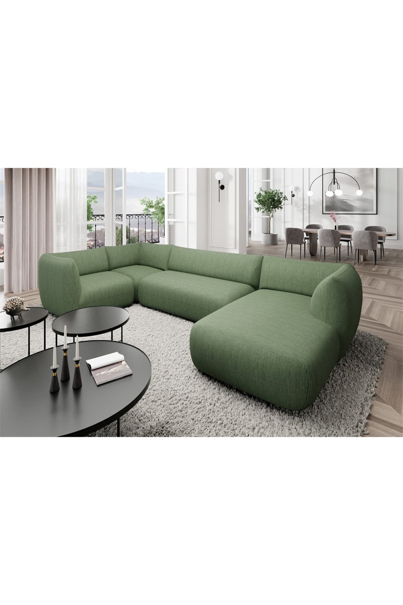 Canapé d'angle droit panoramique Leroy - Vert - 7 places - Tissu structuré