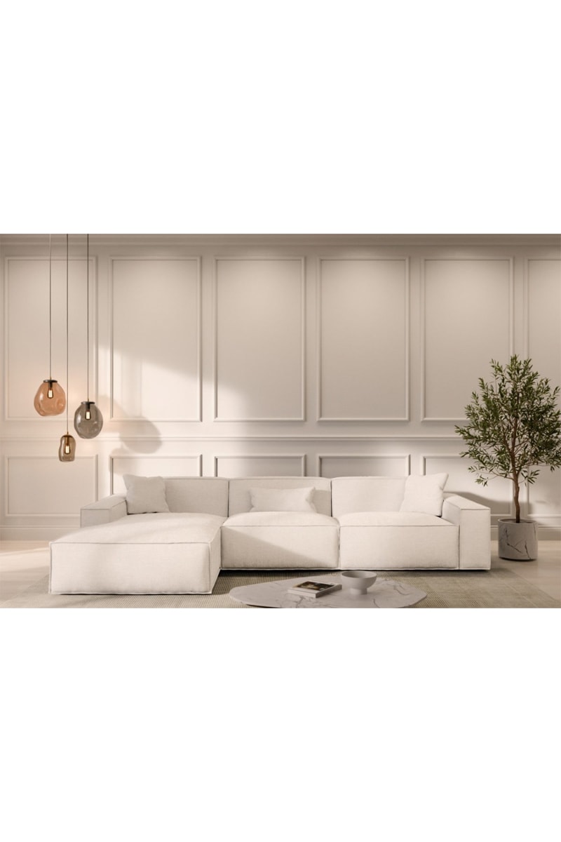 Canapé d’angle gauche Lionel - Blanc - 5 places - En tissu
