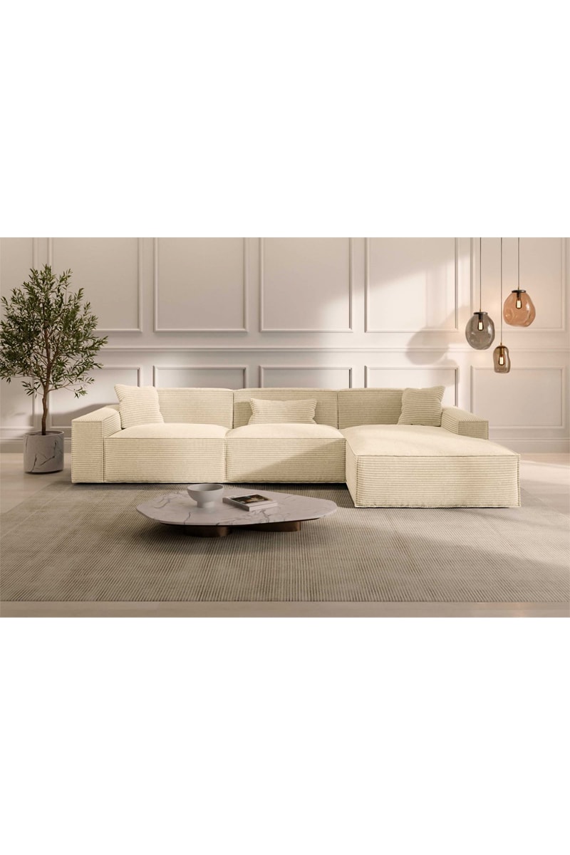 Canapé d'angle droit Lionel - Beige clair - 5 places - Tissu velours côtelé
