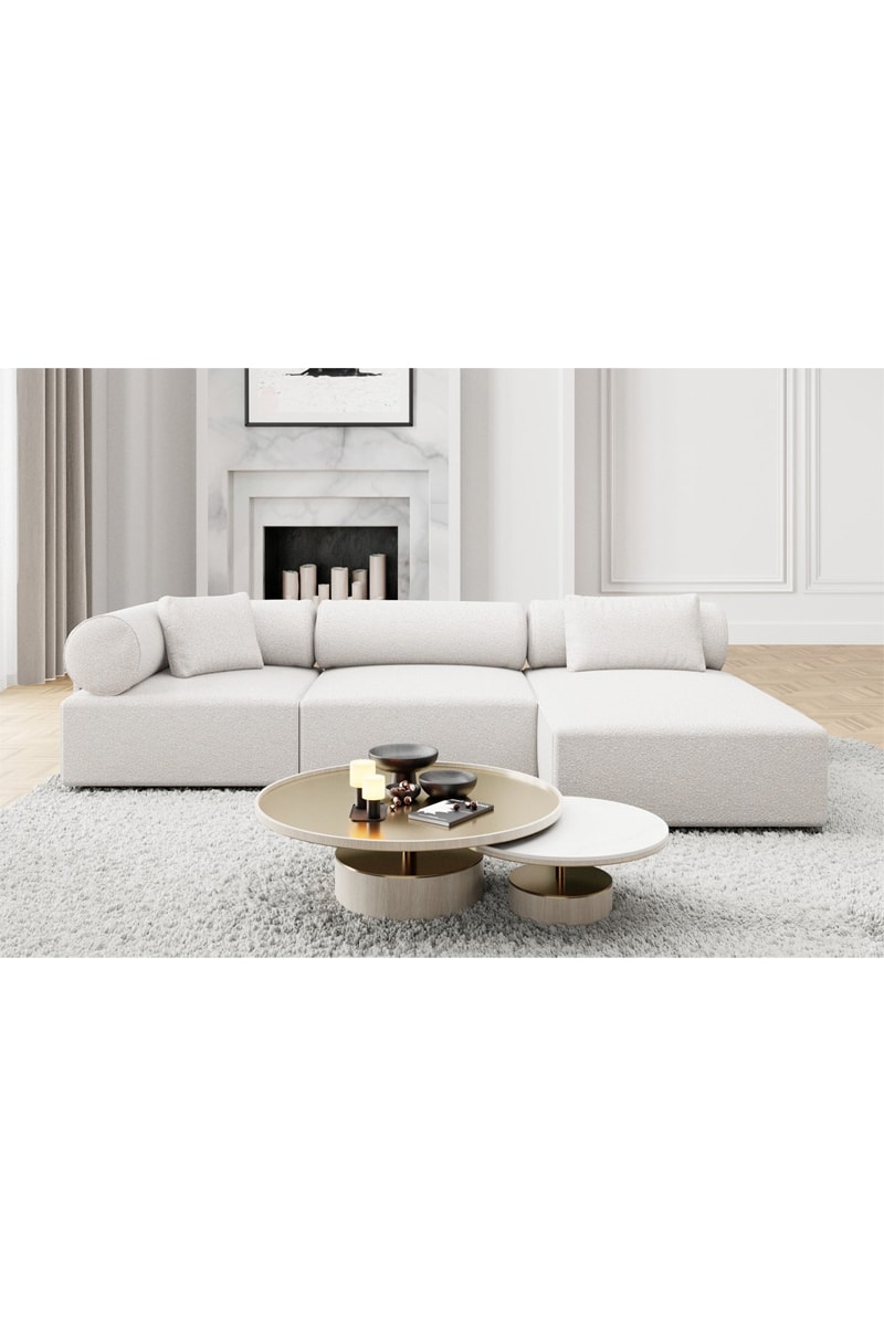 Canapé d'angle droit Form Ragusa - Blanc - 5 places - Tissu bouclette