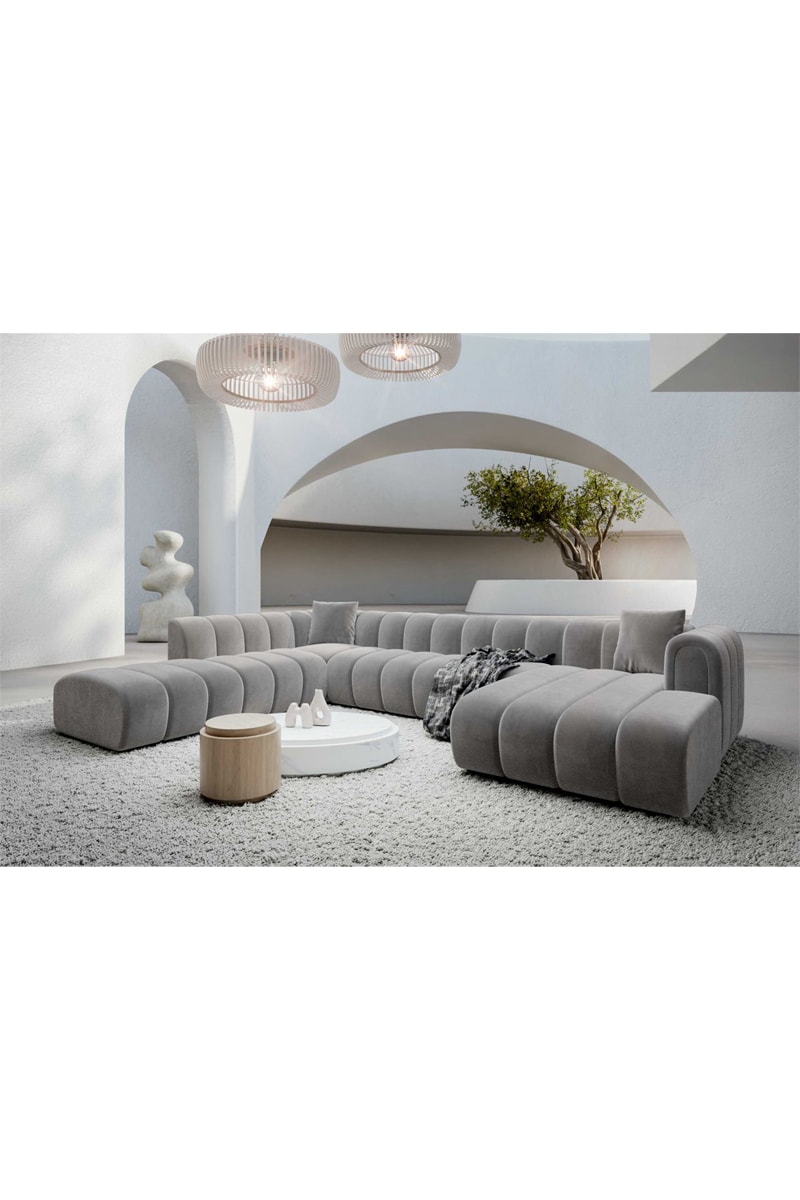 Canapé d'angle droit panoramique Luma - Gris clair - 7 places - En velours