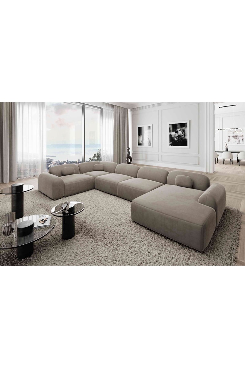 Canapé d'angle gauche panoramique Labucca - Beige foncé - 7 places - En velours