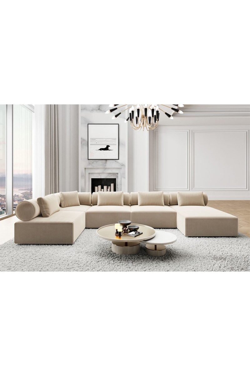 Canapé d'angle gauche panoramique Ragusa - Crème - 7 places - En velours