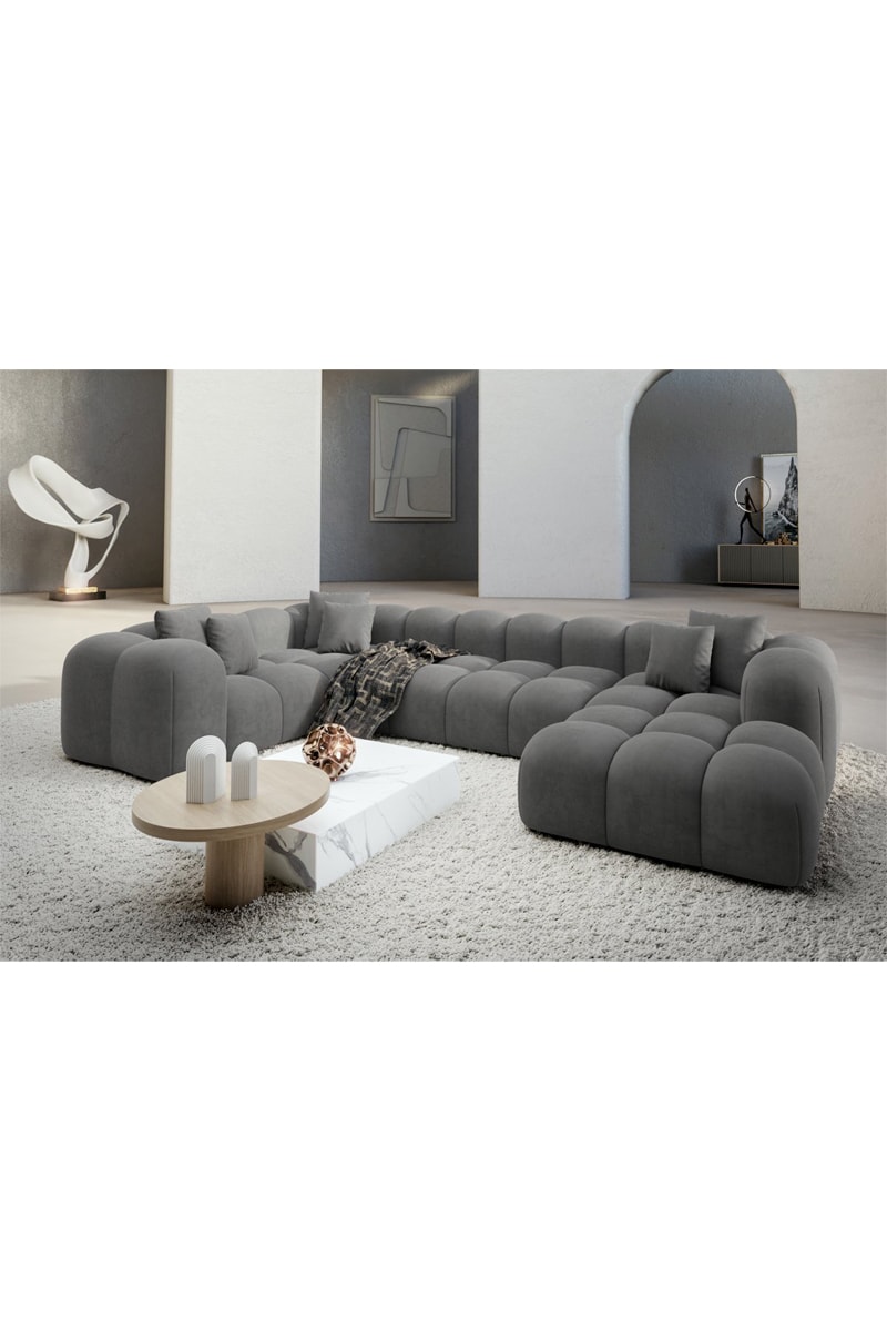 Canapé d'angle droit panoramique Nuvola - Gris foncé - 7 places - Tissu toucher velours