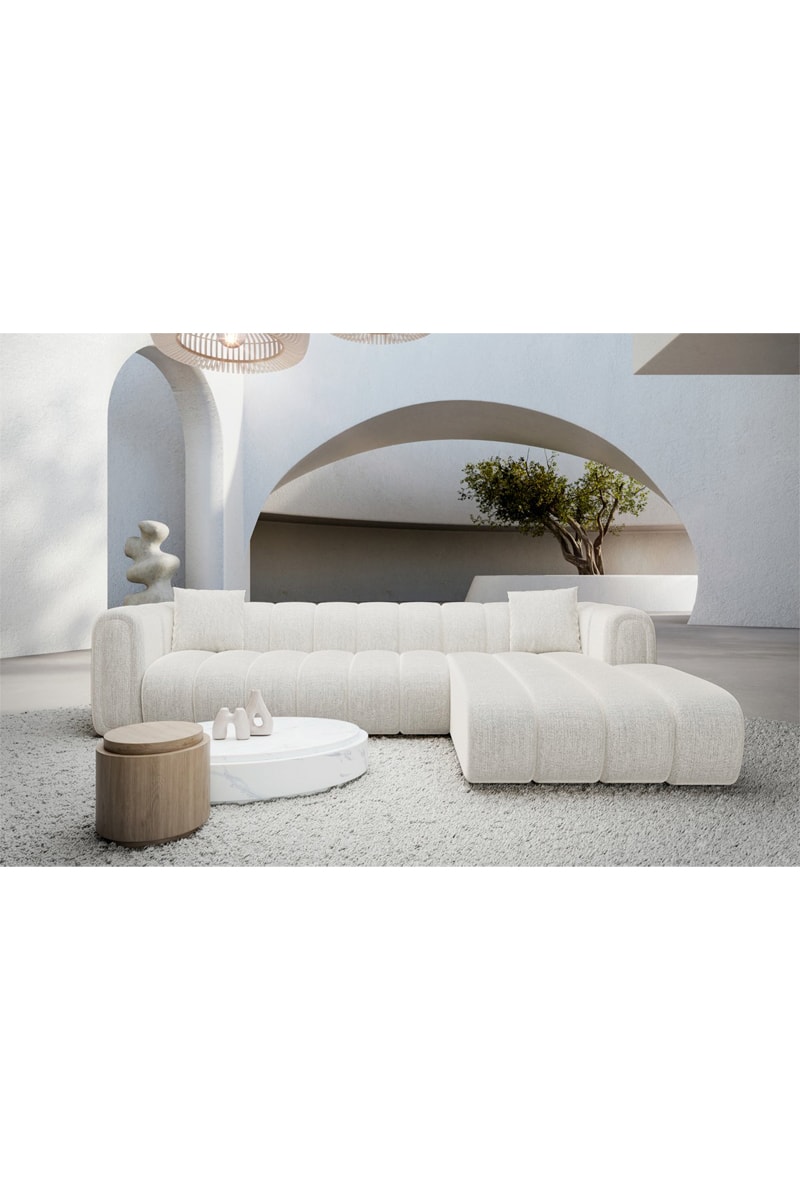Canapé d'angle gauche Luma - Blanc - 5 places - Tissu structuré