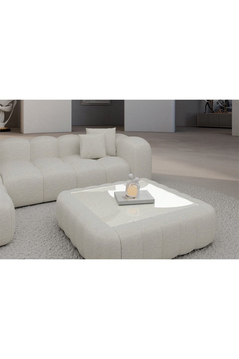 Table basse carrée Nuvola - Blanc - Tissu bouclette - 80 x 35 x 80 cm
